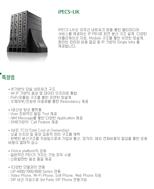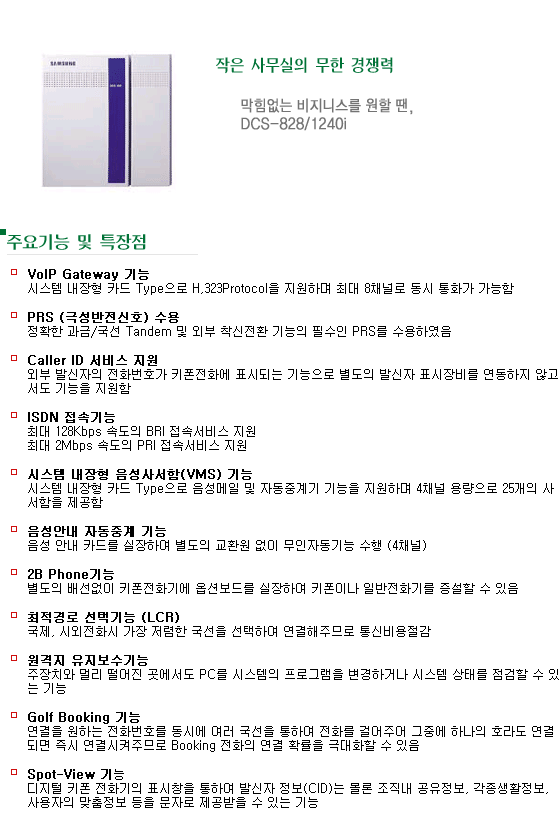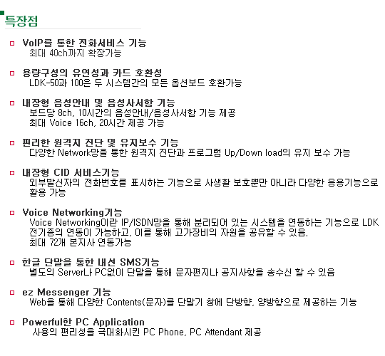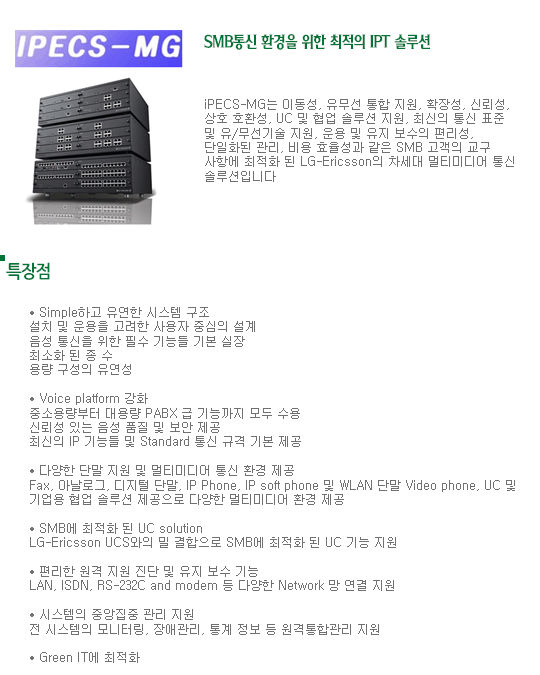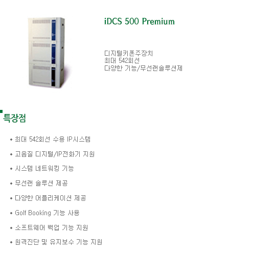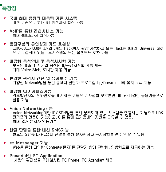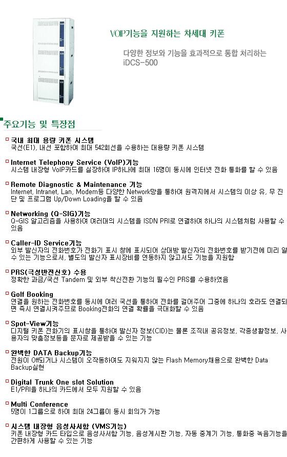 HOME > 키폰시스템 > 디지털키폰주장치 디지털키폰주장치 LG 삼성 IPECE-MG IPECES-Lik ipLDK-60 중형 사무실(20~50인)용 중대형(50~100인)용 대용량(100인 이상) 100~400회선급 순수 IP 솔루션 최대 16채널동시통화 최대 542회선 최대 60회선 최대 12회선 최대 24회선 기본형 시스템 192회선 최대 542회선